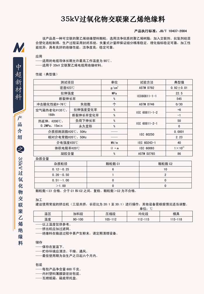 35KV過氧化物交聯(lián)聚乙烯絕緣料