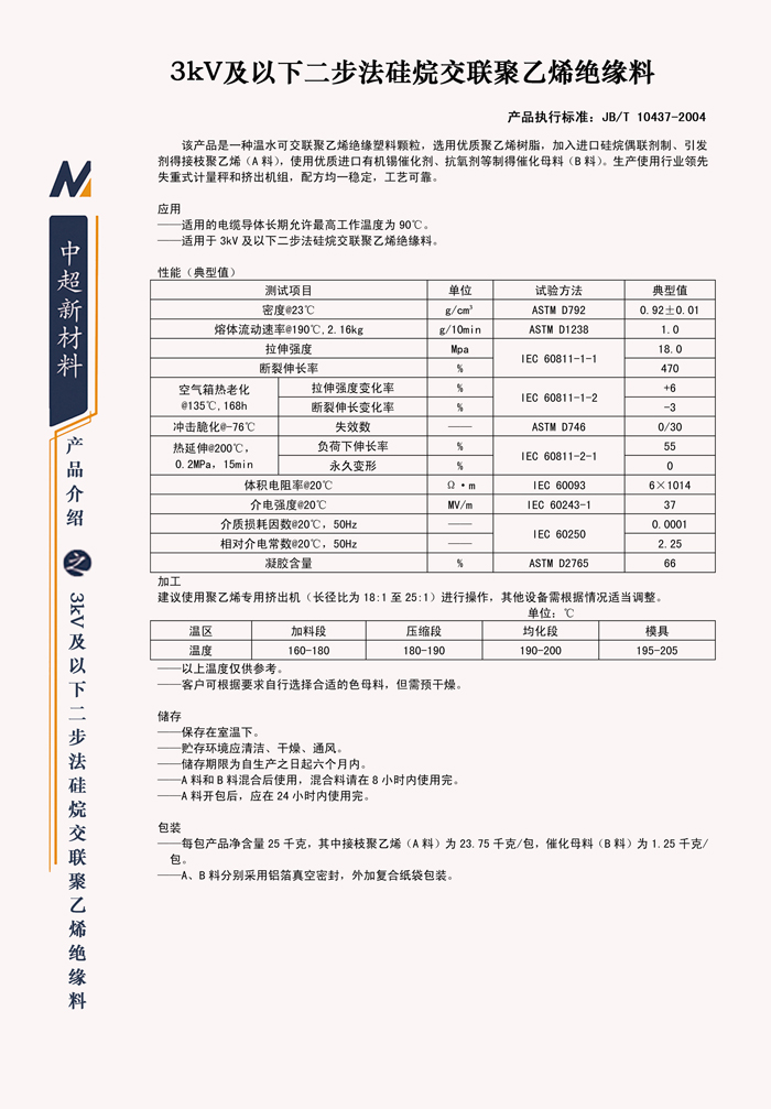 3kV及以下二步法硅烷交聯(lián)聚乙烯絕緣料