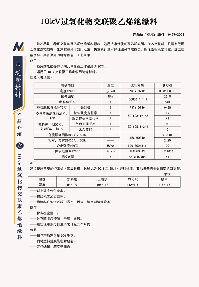 10kV過氧化物交聯(lián)聚乙烯絕緣料