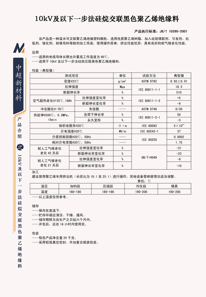 10kV及以下一步法硅烷交聯(lián)黑色聚乙烯絕緣料