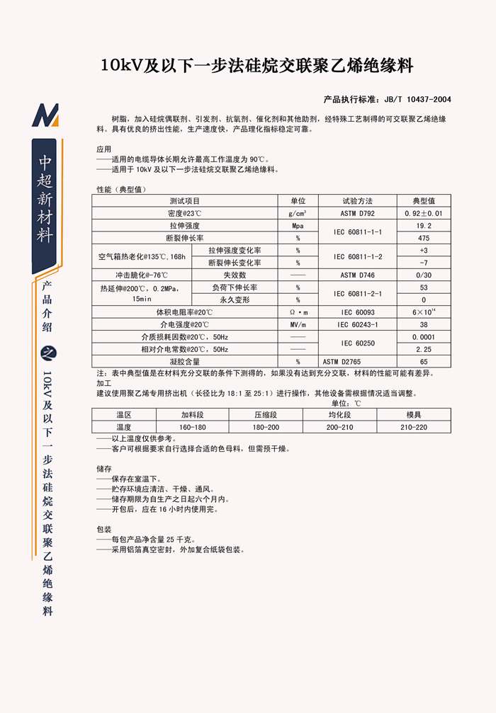 10kV及以下一步法硅烷交聯(lián)聚乙烯絕緣料