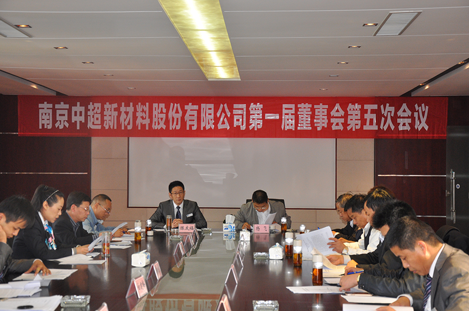 2015年4月21日上午9:00,南京中超新材料股份有限公司第一屆董事會(huì)第五次會(huì)議順利召開。公司全體董事參加了會(huì)議,董事會(huì)還邀請了中超集團(tuán)領(lǐng)導(dǎo)、公司監(jiān)事、高級管理人員列席會(huì)議。會(huì)議由陳友福董事長親自主持。