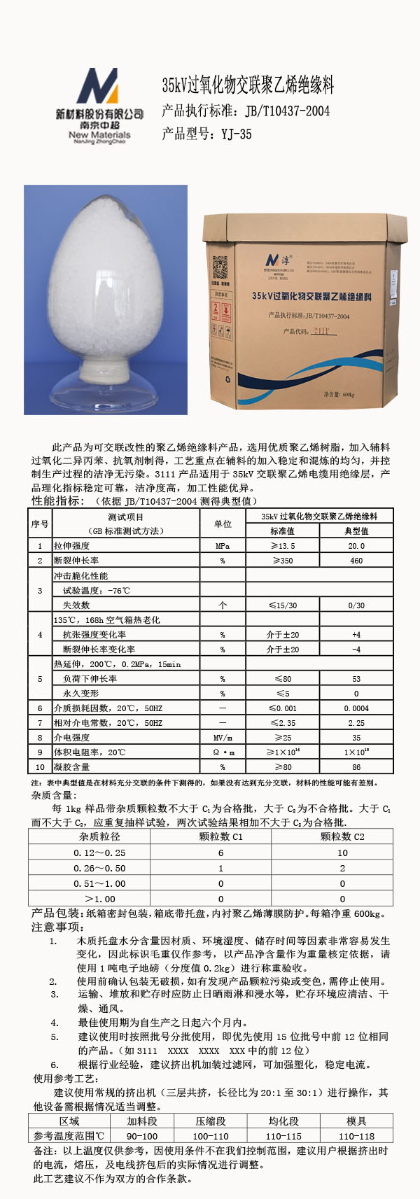 35kV過氧化物交聯(lián)聚乙烯絕緣料