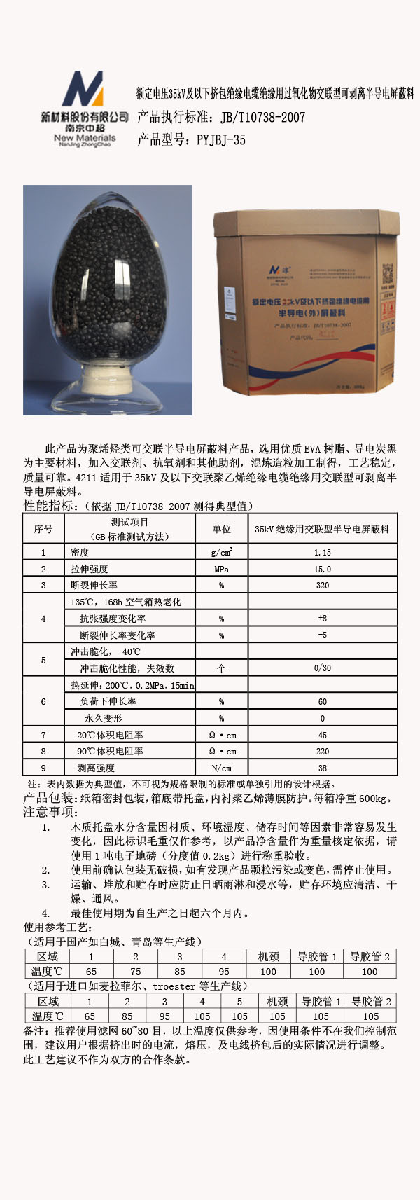 額定電壓35kV及以下擠包絕緣電纜絕緣用過(guò)氧化物交聯(lián)型可剝離半導(dǎo)電屏蔽料
